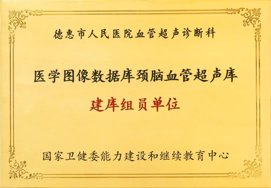 在国家卫健委能教中心组织的脑颈血管数据库建设和病例上传,我院在全国53家多中心病例上传总量、诊断符合率、一次性通过率成绩优异,被国家卫健委能教中心评为“脑颈血管超声示范分中心”十家单位之一、“血管超声建库组员单位”四家优秀单位之一。国家卫健委能教中心杨爱平主任、华扬教授揭牌剪彩。